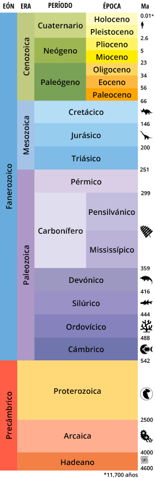 Aquí una lista de la clasificación de eras, eones y periodos